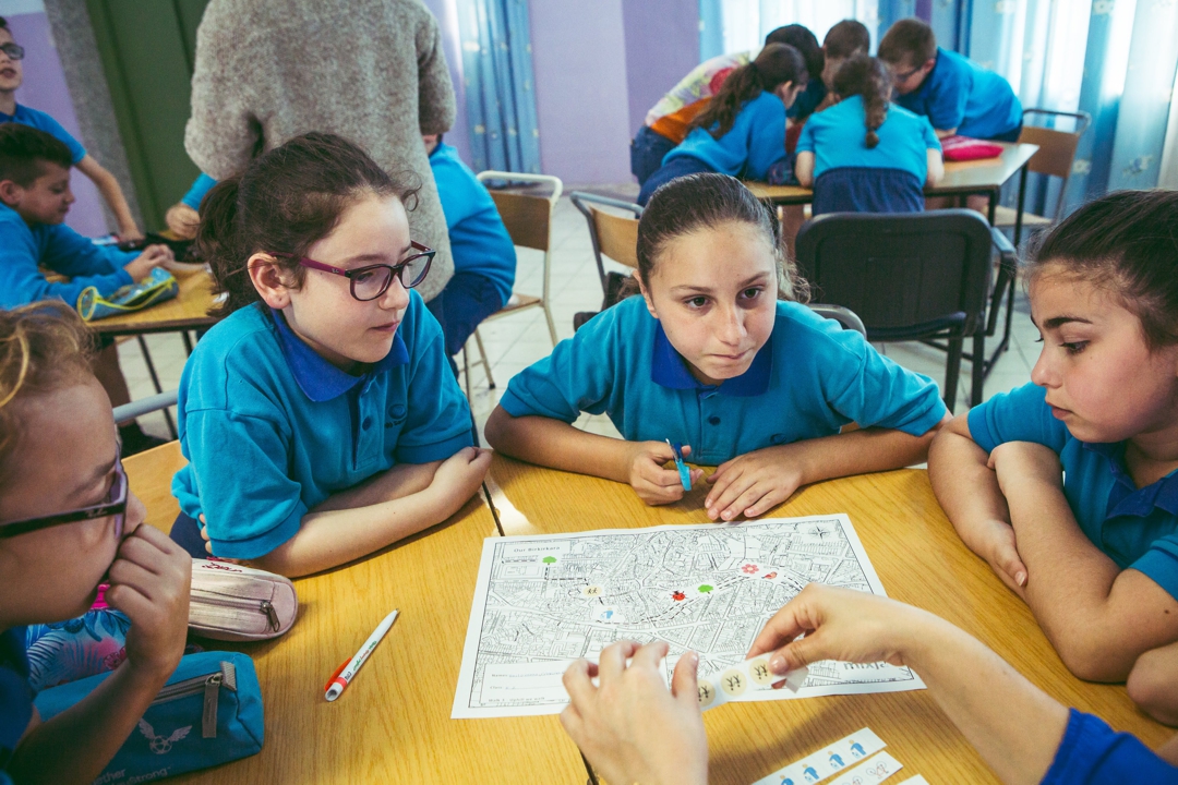 The project consisted of five sessions, performed separately for each of the four classes involved. The preparatory sessions focused on introducing the parents and the children to the concept of the project. The pupils’ initiation to Nimxu Mixja began with mapping their experiences of Birkirkara: they identified familiar places, nature, water and sites they considered as heritage.